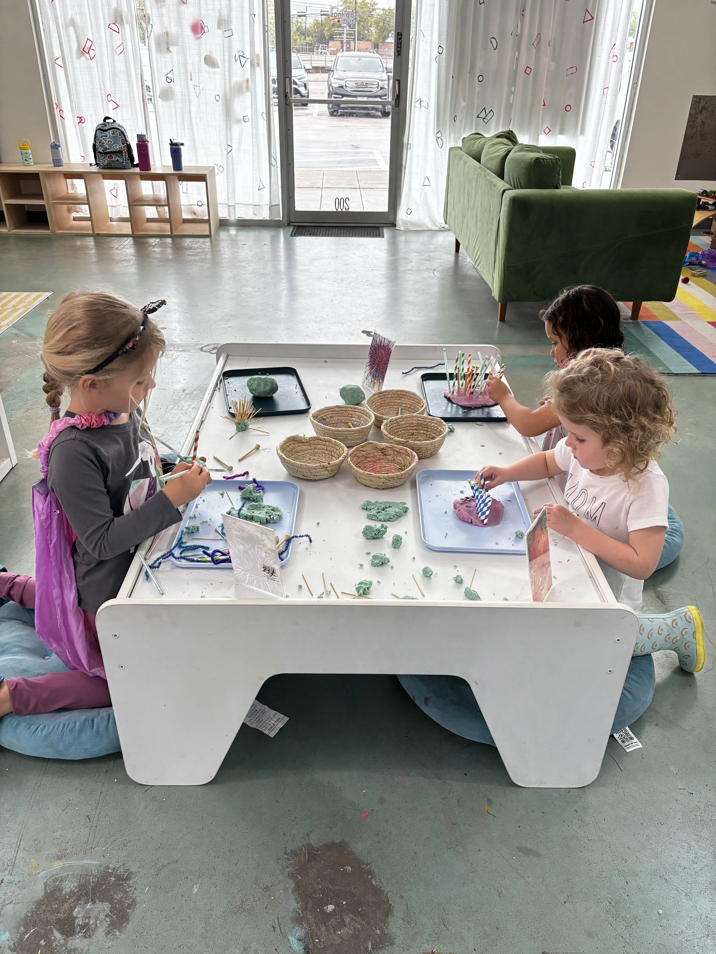 Drop-off classes for ages 3-6, focusing on playful art projects and collaboration with peers.